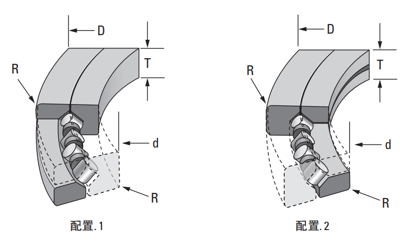 | d | D | T | r | r/min | 动载荷Cr | 静载荷Cor | 动载荷Ca | 静载荷Coa | kg | |